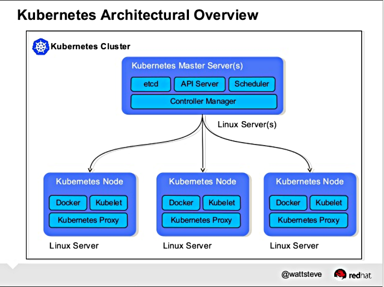 ►Kubernetes 구조 쿠버네티스의 핵심 개념을 한 줄로 표현하자면, 계속해서 원하는 상태를 만들기 위해 현재 상태를 바꾸는 플랫폼입니다. 예를 들어 내가 원하는 컨테이너를 쿠버네티스에 알려주면 (Desired State) 쿠버네티스는 계속해서 Current State(현재상태) 를 체크합니다. 단순히 컨테이너 뿐만 아니라 네임스페이스나 네트워크, 스토리지 같은 부분도 동일하게 동작합니다. 쿠버네티스는 가장 먼저 클러스터 구조를 이해할 필요가 있습니다. 클러스터는 여러 대의 컴퓨터가 모여서 같은 목적으로 수행되는 컴퓨터들의 집합이라고 볼 수 있는데, 이때 클러스터 전체를 관리하는 컨트롤러로서 마스터가 존재하고, 컨테이너가 배포되는 물리적인 머신을 노드라고 하게 됩니다. 마스터에는 kube-api-se..